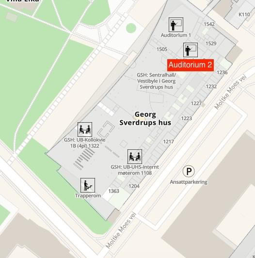 Møtet holdes i Auditorium 2 i Georg Sverdrups hus - Universitetsbiblioteket på Blindern.